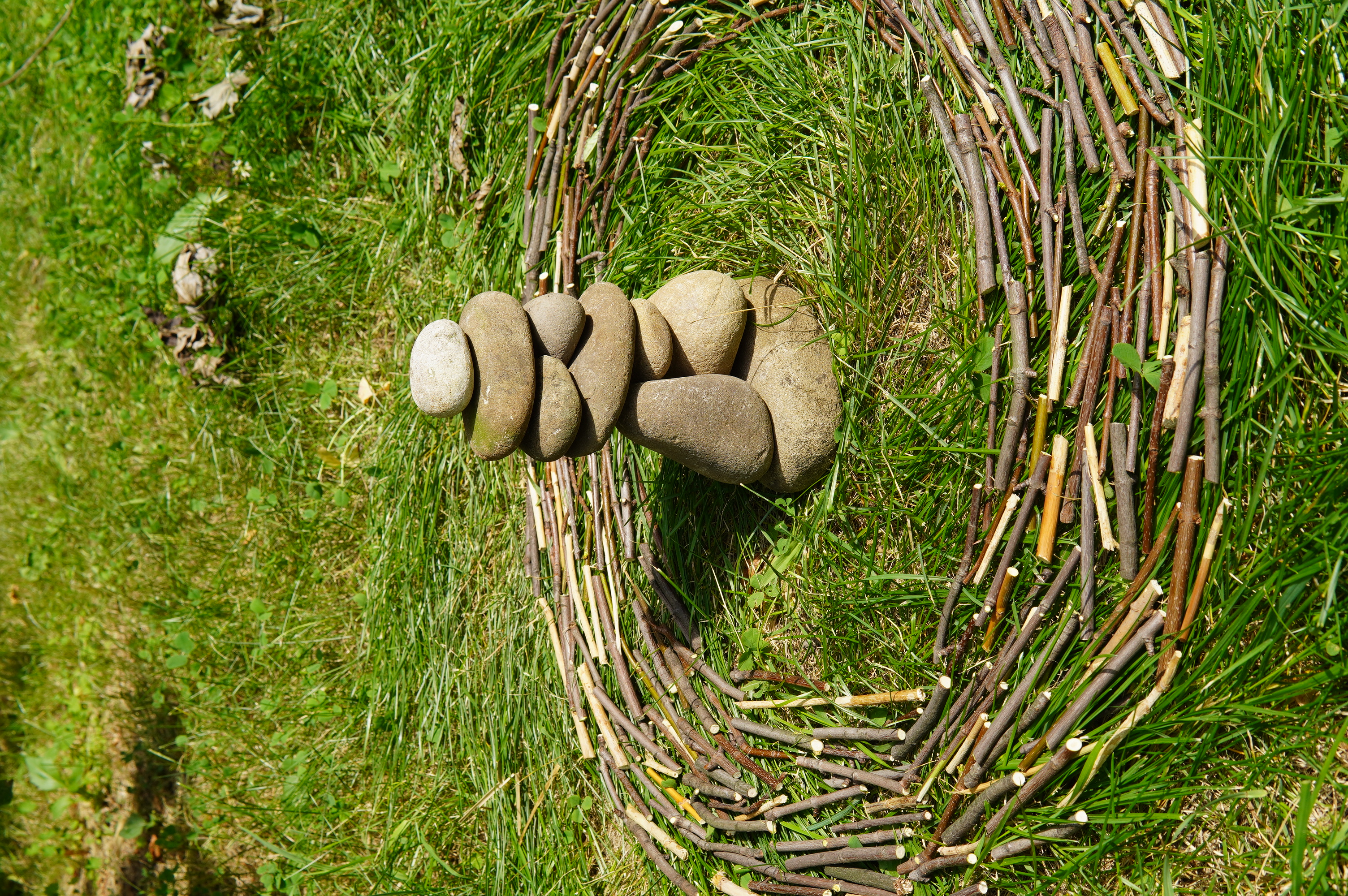 W trakcie dwudniowych warsztatów (20 i 21 sierpnia) przy pawilonie Zielone OKO razem chętnymi osobami tworzyłyśmy instalacje i struktury inspirowane sztuką Land Artu (sztuki ziemi).